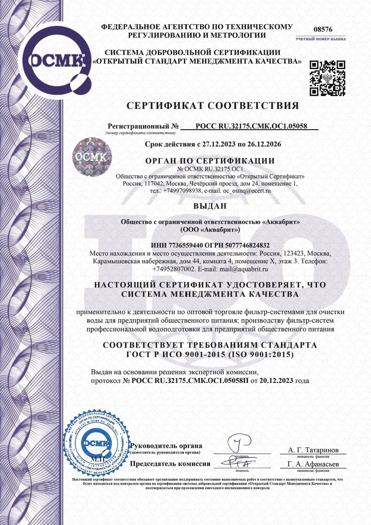 Водоподготовка АКВАБРИТ обеспечивает стабильно высокое качество воды, соответствующее строгим санитарным и технологическим требованиям предприятий общественного питания. Вода после фильтрации — прозрачная, безопасная, без посторонних запахов и привкусов.